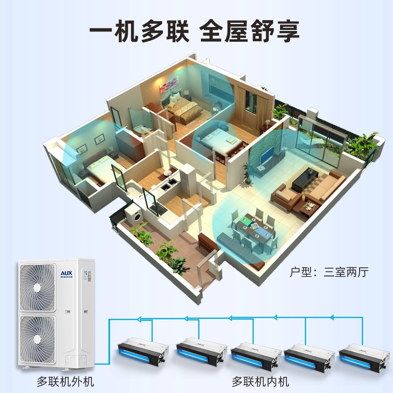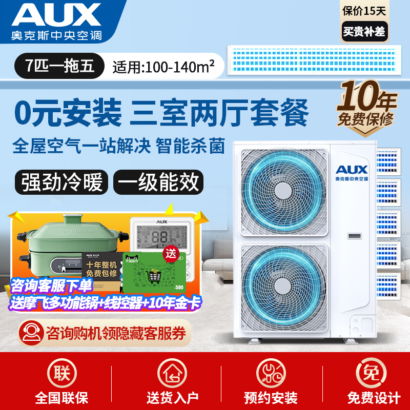 • AUX/奥克斯一拖五7匹变频家用中央空调 DLR-H180W(C1) 包安装