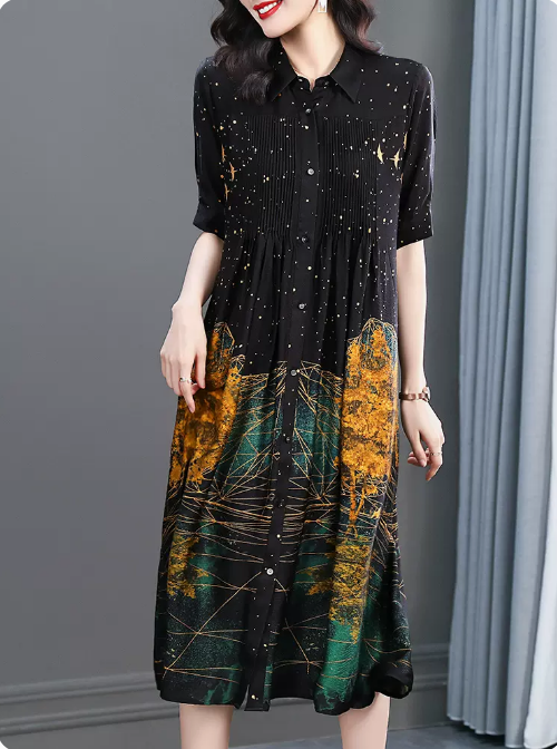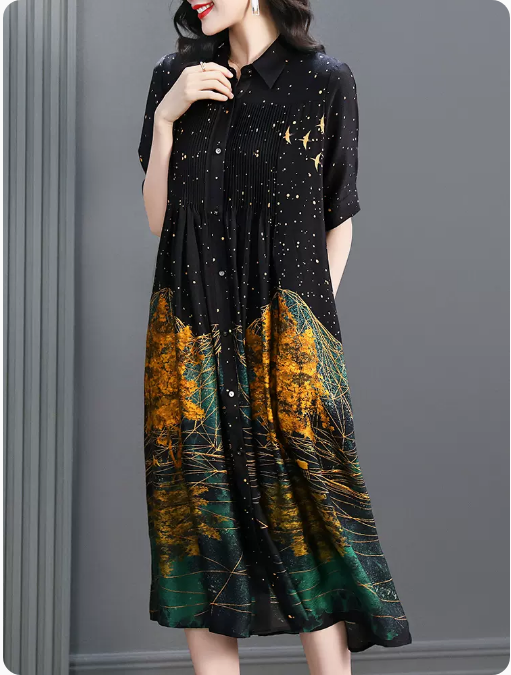 • 贵夫人高端真丝连衣裙女夏季2023新款大牌奢华洋气重磅桑蚕丝长裙